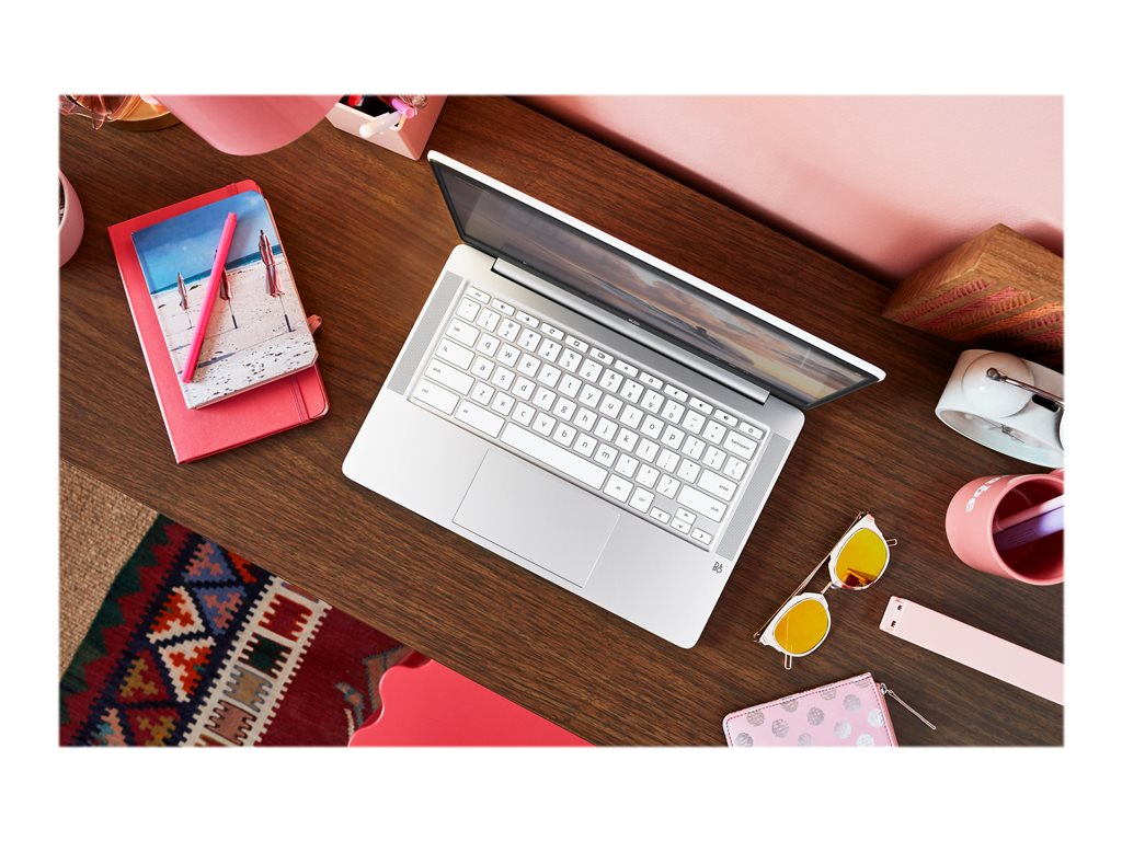 Intel Celeron - N4020 / up to 2.8 GHz - Chrome OS - UHD Graphics 600 - 4 GB RAM - 32 GB eMMC - 14" 1366 x 768 (HD) - Wi-Fi 5 - natural silver (keyboard frame and base), ceramic white (cover), paint finish - kbd: US